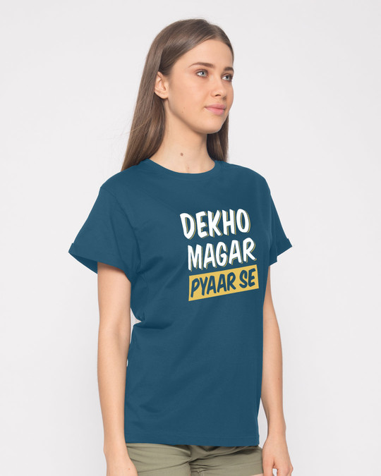 Buy Dekho Magar Pyaar Se Printed Half Sleeve Boyfriend T Shirt For