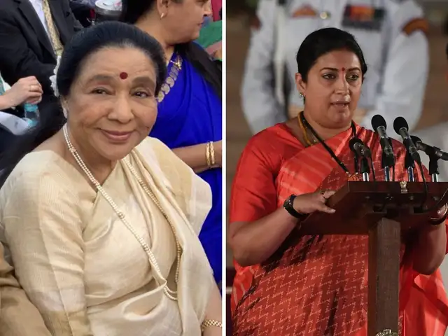 Asha Bhosle Smriti Irani Helps A Stranded Asha Bhosle At Pm