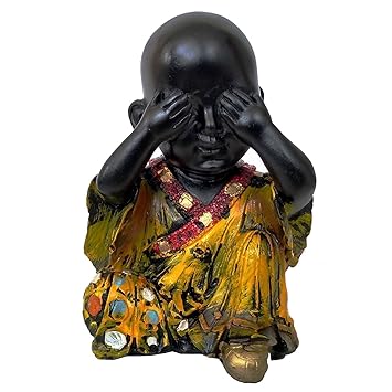 Yellow Monk Covering Eyes Bura Mat Dekho Decorative Gifts From