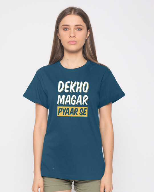 Buy Dekho Magar Pyaar Se Printed Half Sleeve Boyfriend T Shirt For