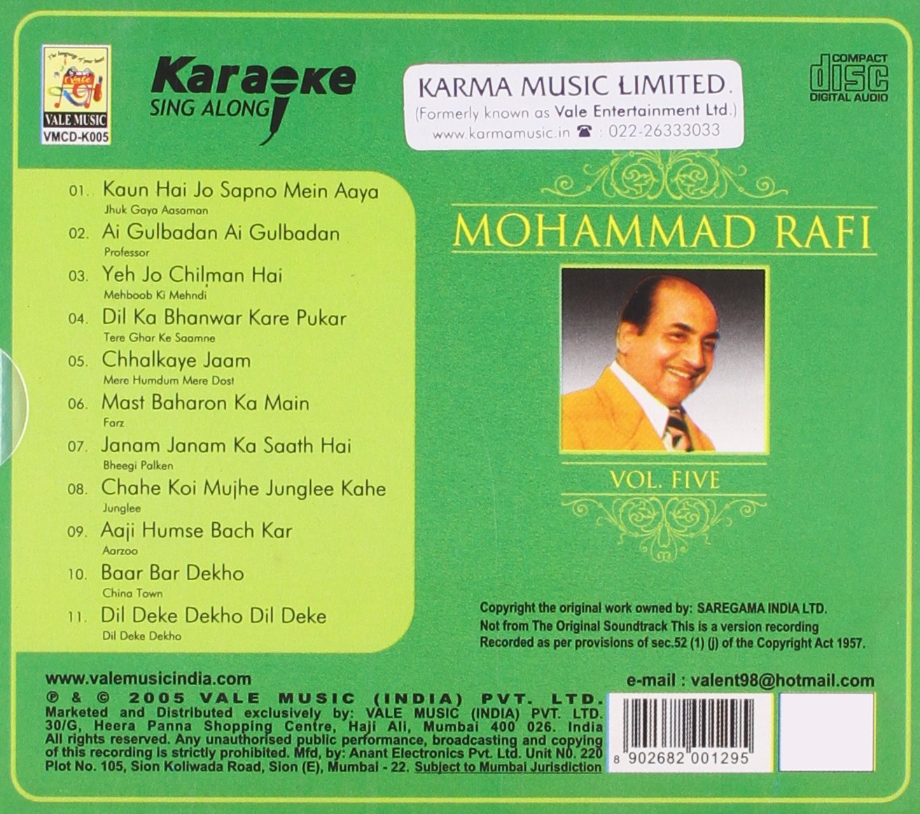 Karaoke Mohd Rafi Vol 5 By Mohd Rafi Amazon Co Uk Music