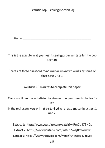 Aqa A Level Music Pop Listening Exercises Section A Aos 2